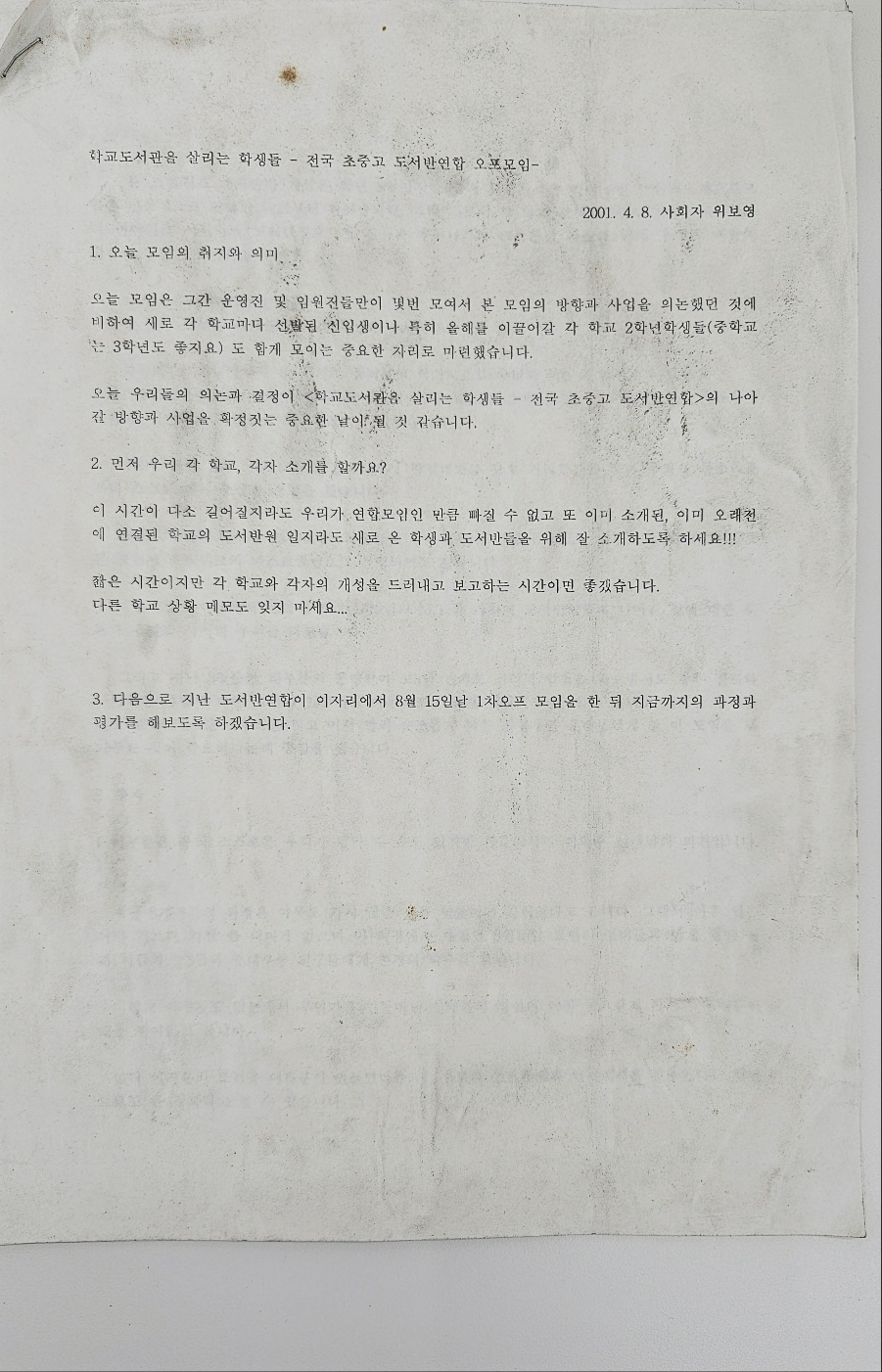 [ȸÀÇÀÚ·á] Çб³µµ¼°üÀ» »ì¸®´Â Çлýµé - Àü±¹ÃÊÁß°í µµ¼ºÎ ¿¬ÇÕ 2001.4.8.